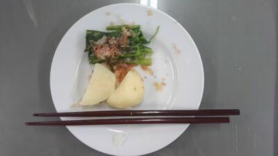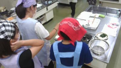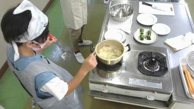ホウレンソウとジャガイモを「ゆでる」調理に取り組みました。