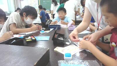 2年生が図工室で活動していました。たまごから出てくるものは・・・、自然だったり、カワイイだったり、ロボットだったり、思いおもいに表していました。