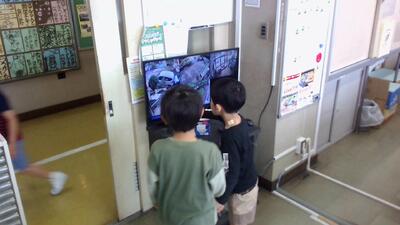 今日は1年生だけで、学校内の探検を行っていました。前回は2年生に連れられての探検でしたが、今日は自分たちで挨拶して、お願いして、それぞれの教室を回っていました。