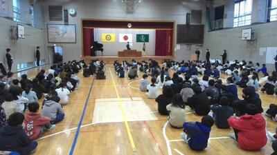 本校は今日で2学期が終了。朝に終業式を執り行いました。