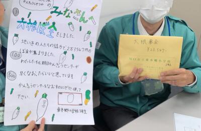 2月19日 投稿: admin (08:50) カテゴリー: お知らせ 3年生の皆さんによる募金活動で集まったお金を、朝日環境センターへお渡ししてきました。 修理が1日でも早く完了することを願っております。 -