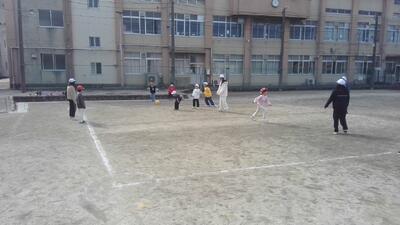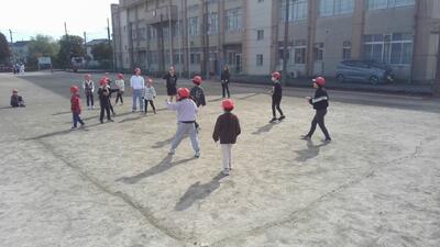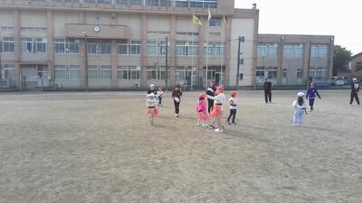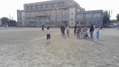 今日、校庭では「みんなで楽しく過ごすために」話し合った結果としての、1年生との活動を行っていました。