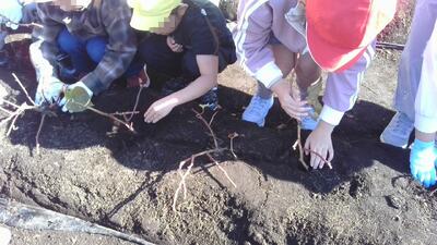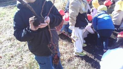 植えた時と同じく、今回も新郷保育所の皆さんと活動しました。