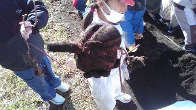 1年生が6月に苗を植えたサツマイモを収穫しました。