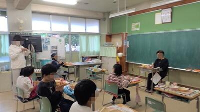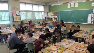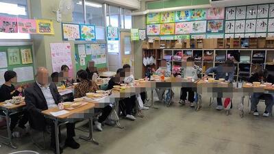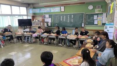 給食を子供たちと一緒に召し上がっていいただきました。