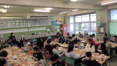 今日のお昼には学校応援団やボランティアの方々を招いての「感謝の会」を行います。